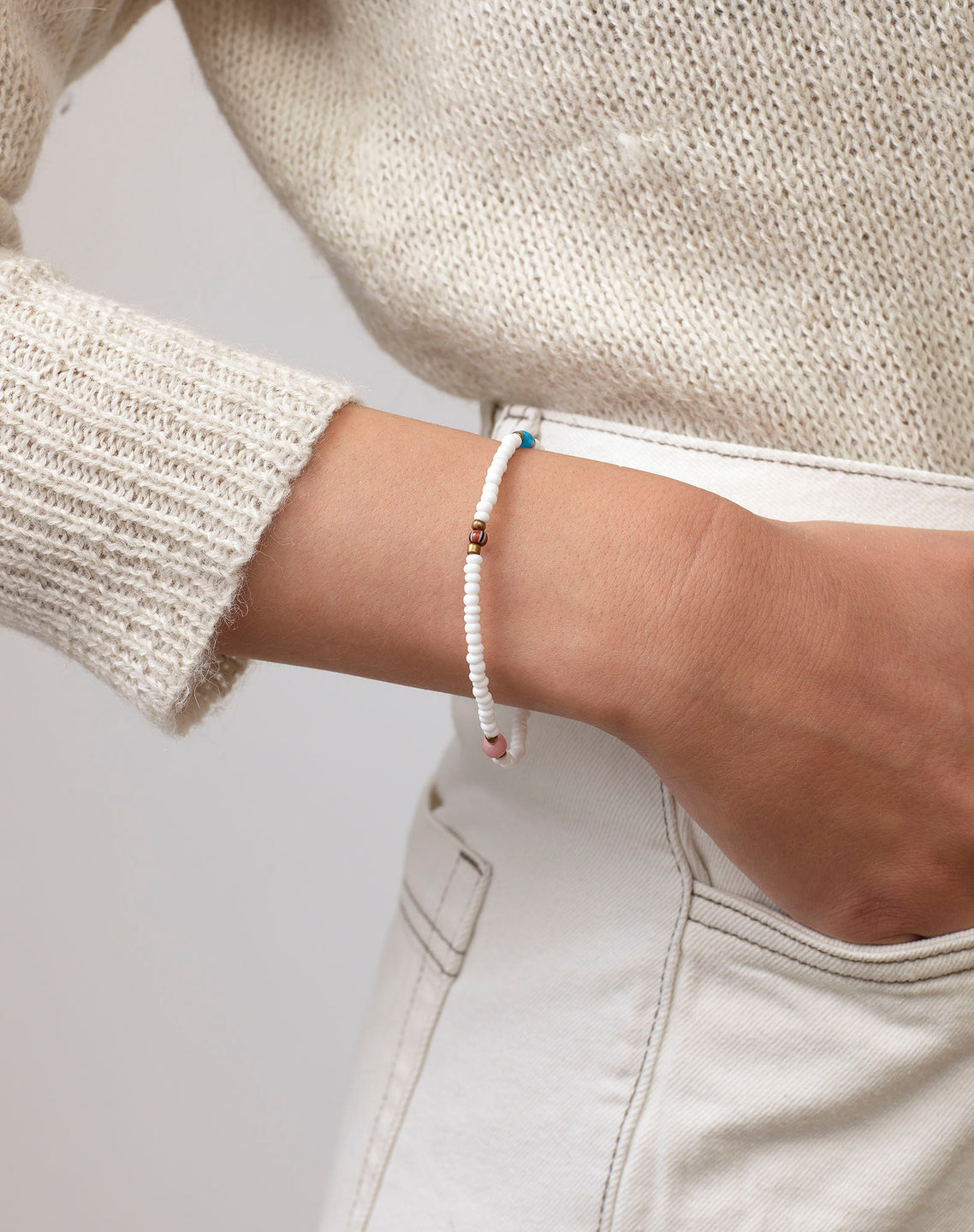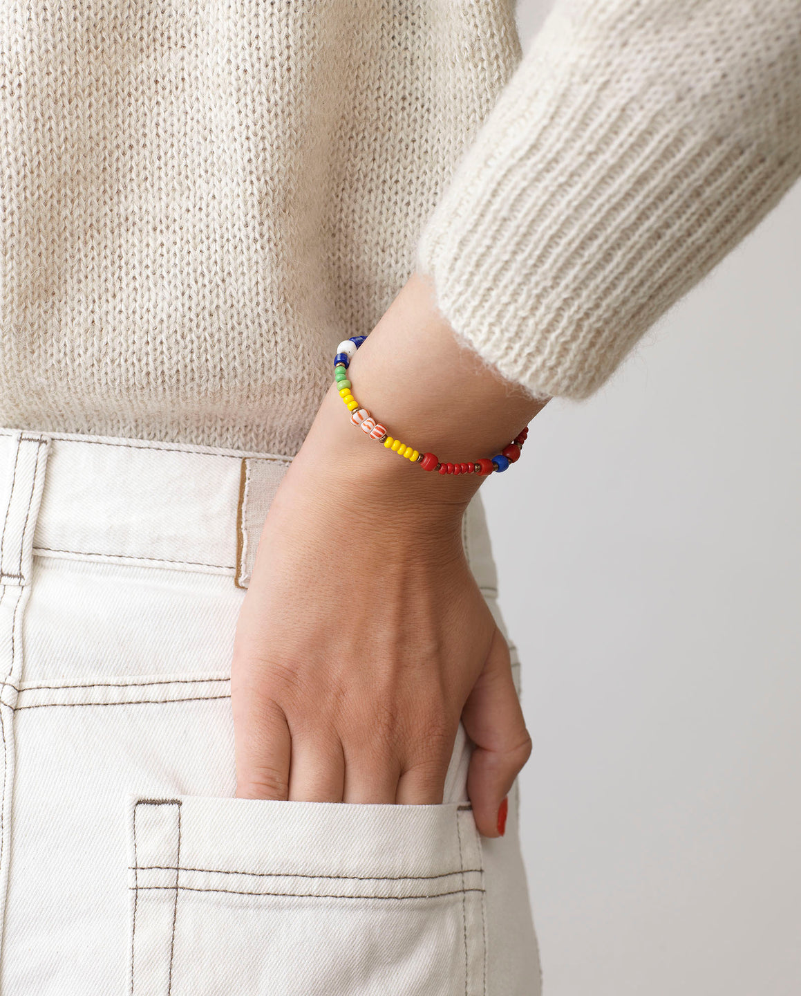 Vibrant and colourful bracelets and necklaces with small details to finish your casual, everyday look. Designed by ANNI LU designer Helle Vestergaard Poulsen and made with love by Abigael, Agnes, Hellen, Judith and Emily, five brave women trying to reach their hopes and aspirations in life - for both themselves and their children (learn more of their stories below). Perfect to stack with similar ANNI LU styles or wear it solo.