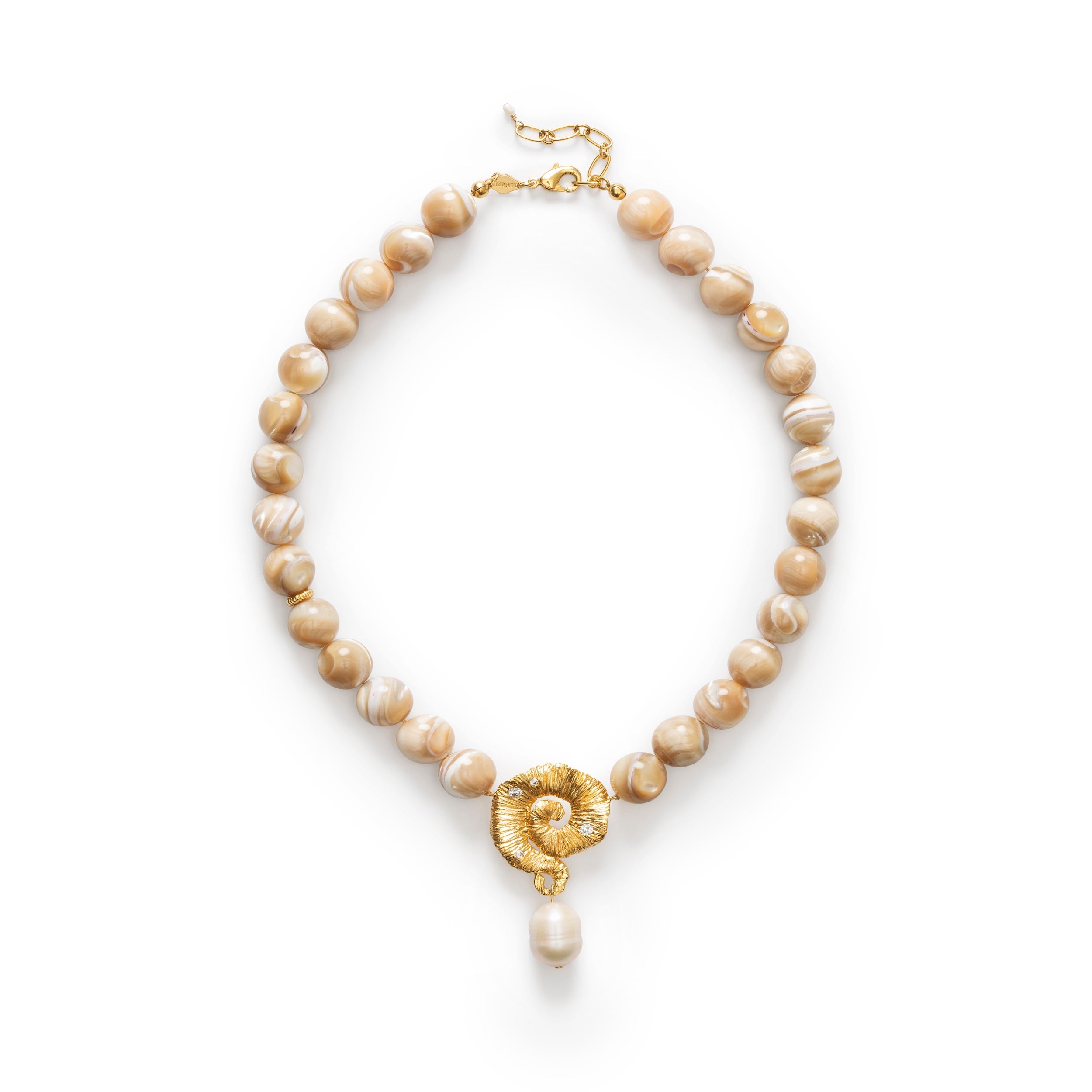 JETSET GEMS feels like a journey — soft beige tones and freshwater pearls capturing the essence of travel, time and sun-kissed memories you carry with you.- Crafted in brass with 18-karat gold plating and anti-tarnish e-coating