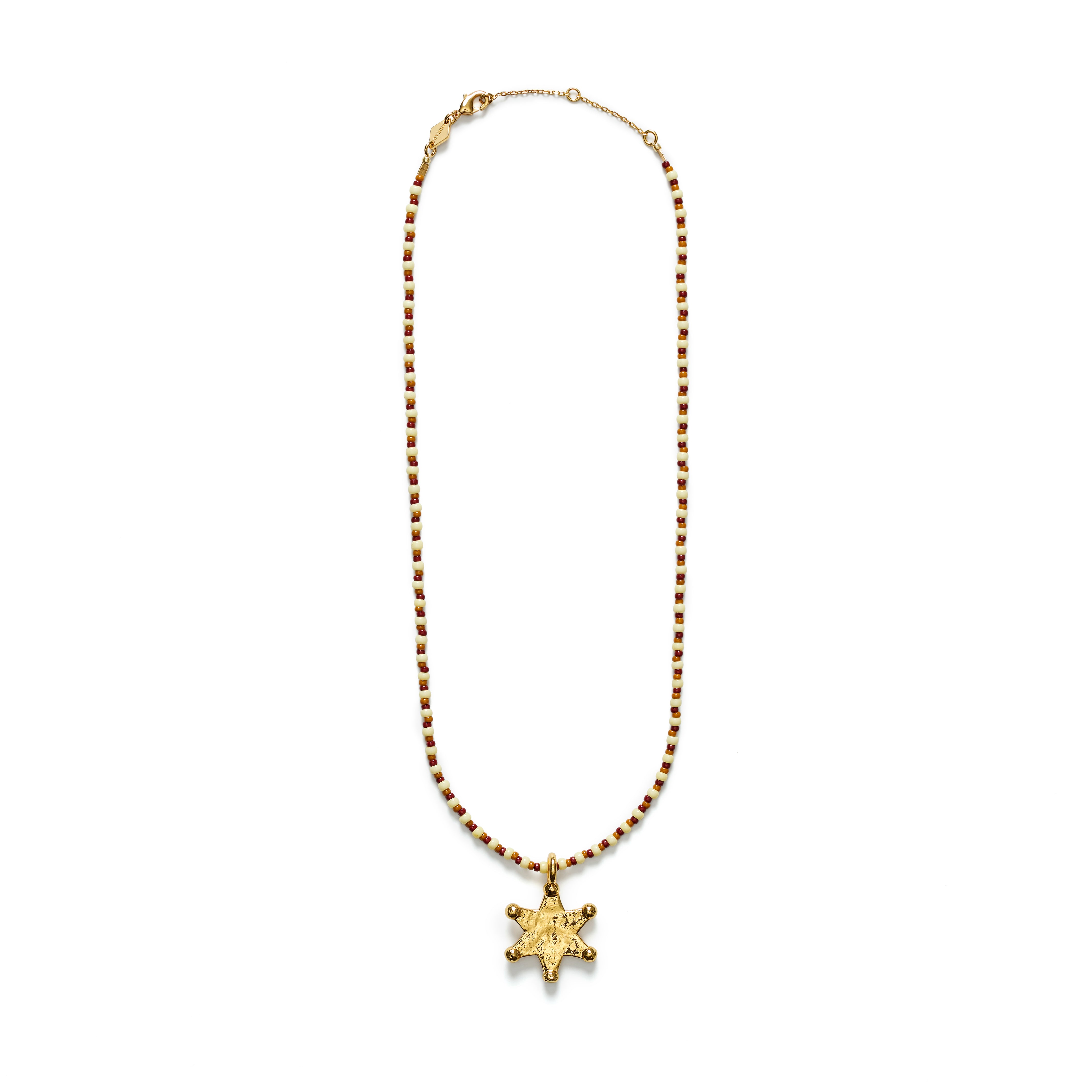 Do you feel lucky? Well, you should, if you are wearing our Lucky Star. Golden-brown beads with a starry pendant. Lucky Star is a perfect mix of western charm and rock’n’roll.