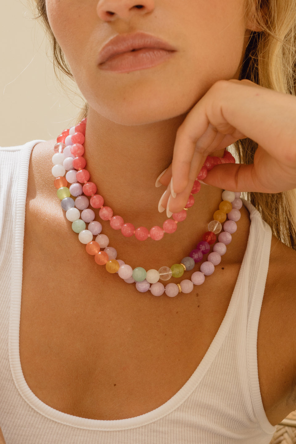 BALL is all about shape, shine and playful tradition. Gemstone beads are spaced with tiny glass details that echo the classic knotting technique — giving each piece a handcrafted, timeless feel. With a wide palette of colors and styles, Ball has become a signature series to stack, collect and wear your way.