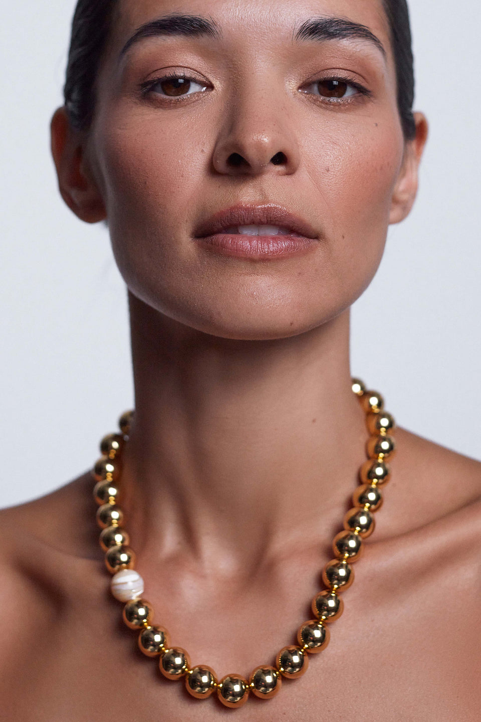The Bling A Ling necklace welcomes a feeling of timeless glamour with its metallic colors and vibrant shimmer. Add our Heart on a String to the necklace for a fun statement look.- Crafted in brass with 18-karat gold plating + e coating