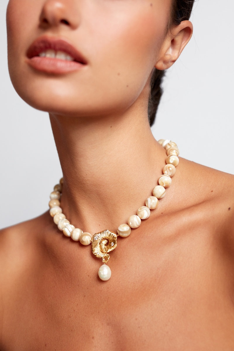 JETSET GEMS feels like a journey — soft beige tones and freshwater pearls capturing the essence of travel, time and sun-kissed memories you carry with you.- Crafted in brass with 18-karat gold plating and anti-tarnish e-coating