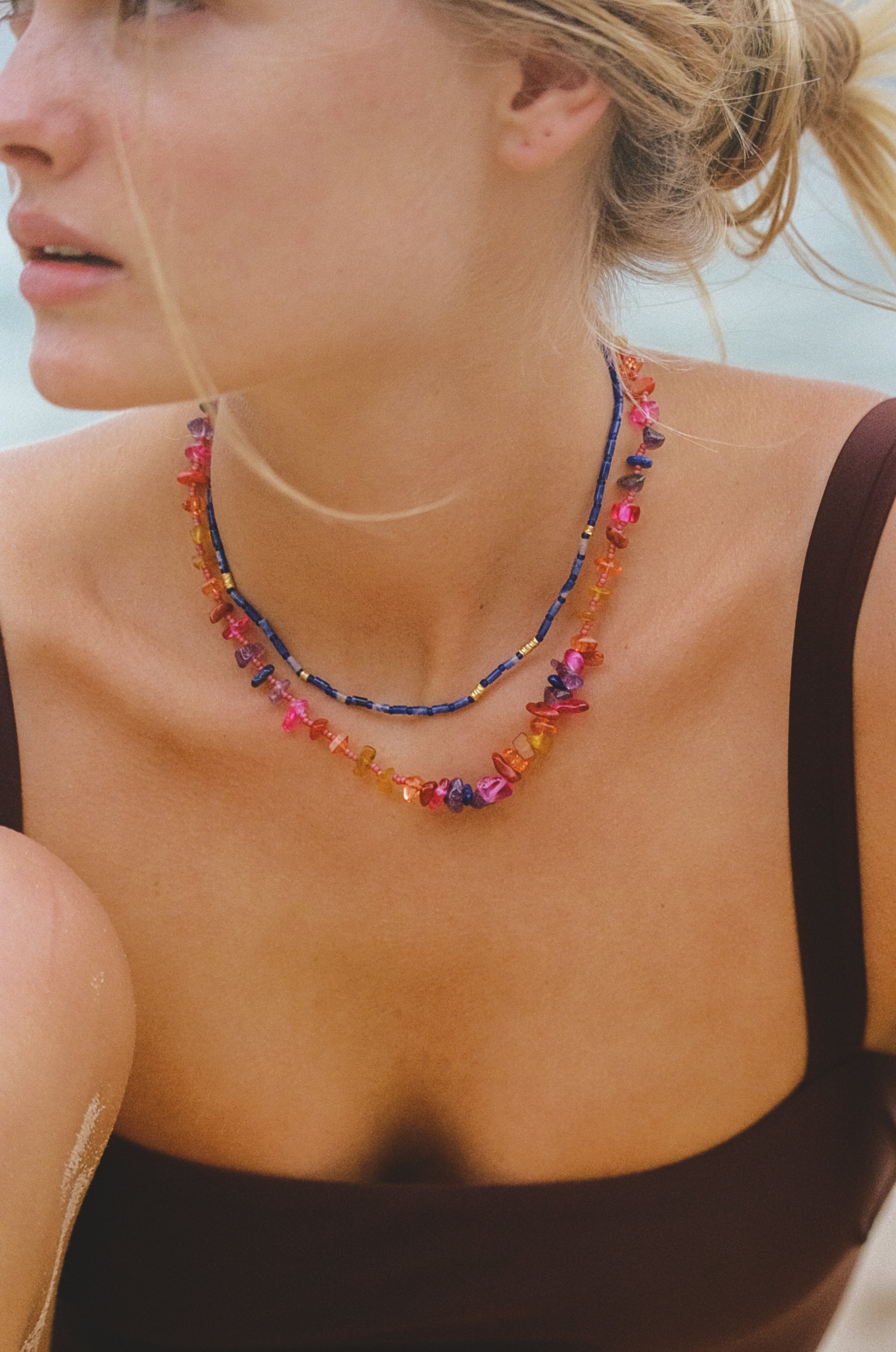 An old ANNI LU classic is back in new colors. There is something mystical about the reef. Colorful, organic and surprising is what lies beneath the surface and just waiting to be explored. Just as much as we can’t wait to see how you will combine The Reef necklace with your other ANNI LU necklaces. Perfect to be worn alone or in layers with more delicate jewelry.